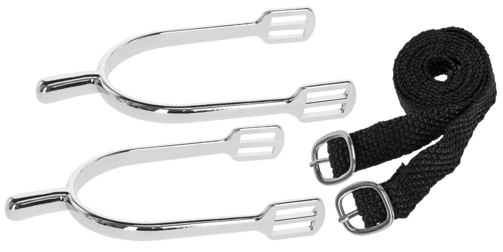 Das schlanke Design der Sporen mit Sporenriemen besticht durch eine edle Edelstahl-Optik, die nicht nur optisch überzeugt, sondern auch langlebig und korrosionsbeständig ist. Die sorgfältig gestalteten Sporenriemen sorgen für einen sicheren Halt und passen sich perfekt deinem Reitstiefel an, sodass du stets einen stilvollen Auftritt hinlegen kannst.
