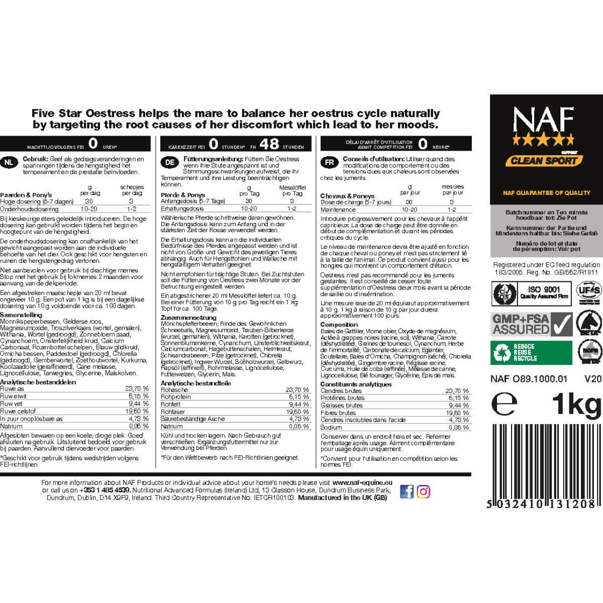 NAF Oestress Pulver 1 kg Zusatzfuttermittel für Stuten Ergänzungsfuttermittel