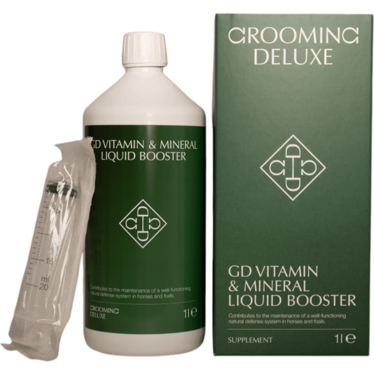 Grooming Deluxe Vitamin und Mineral Liquid Booster Ergänzungsfuttermittel ist die ideale Ergänzung zur täglichen Ration deines Pferdes. Die flüssige Form ermöglicht eine einfache Dosierung und flexible Anwendung – direkt oder über das Futter verabreicht. Die sorgfältig abgestimmte Rezeptur enthält eine Vielzahl wichtiger Vitamine, Spurenelemente und Aminosäuren. Ob Fohlen, ausgewachsenes Pferd oder Zuchtstute – das Ergänzungsfuttermittel ist für jede Lebensphase geeignet. Die Zusammensetzung ist besonders für Tiere mit erhöhtem Bedarf konzipiert, beispielsweise im Fellwechsel oder während intensiver Trainingsphasen. Mit dem Booster ergänzt du gezielt das Futter deines Pferdes um essentielle Nährstoffe.