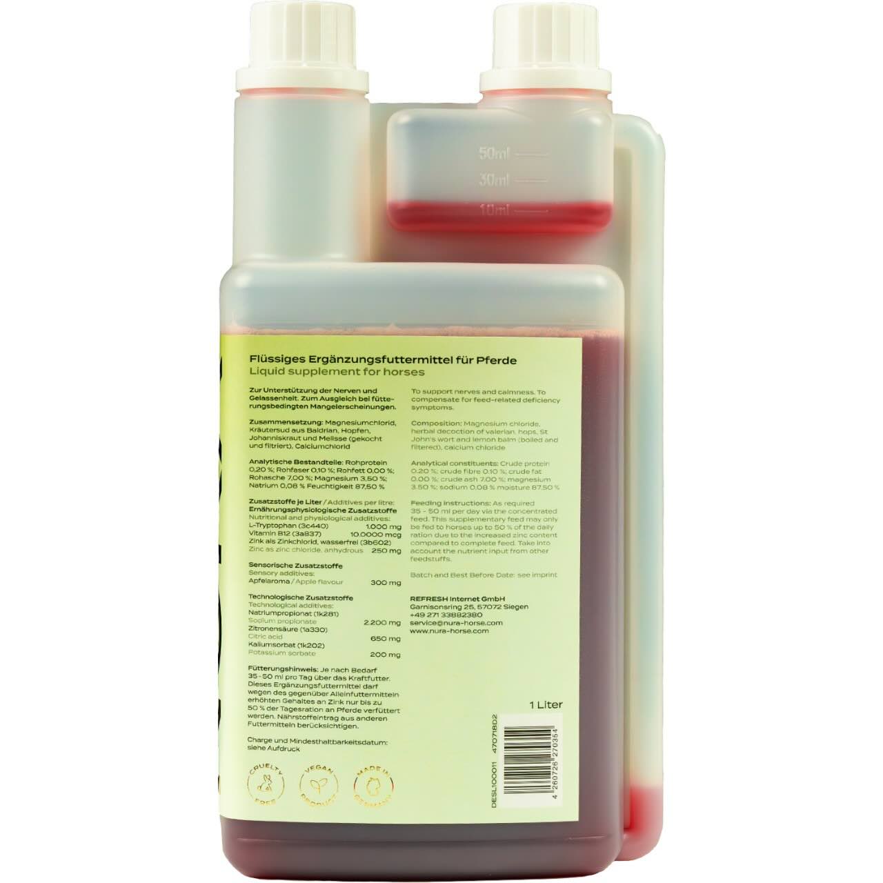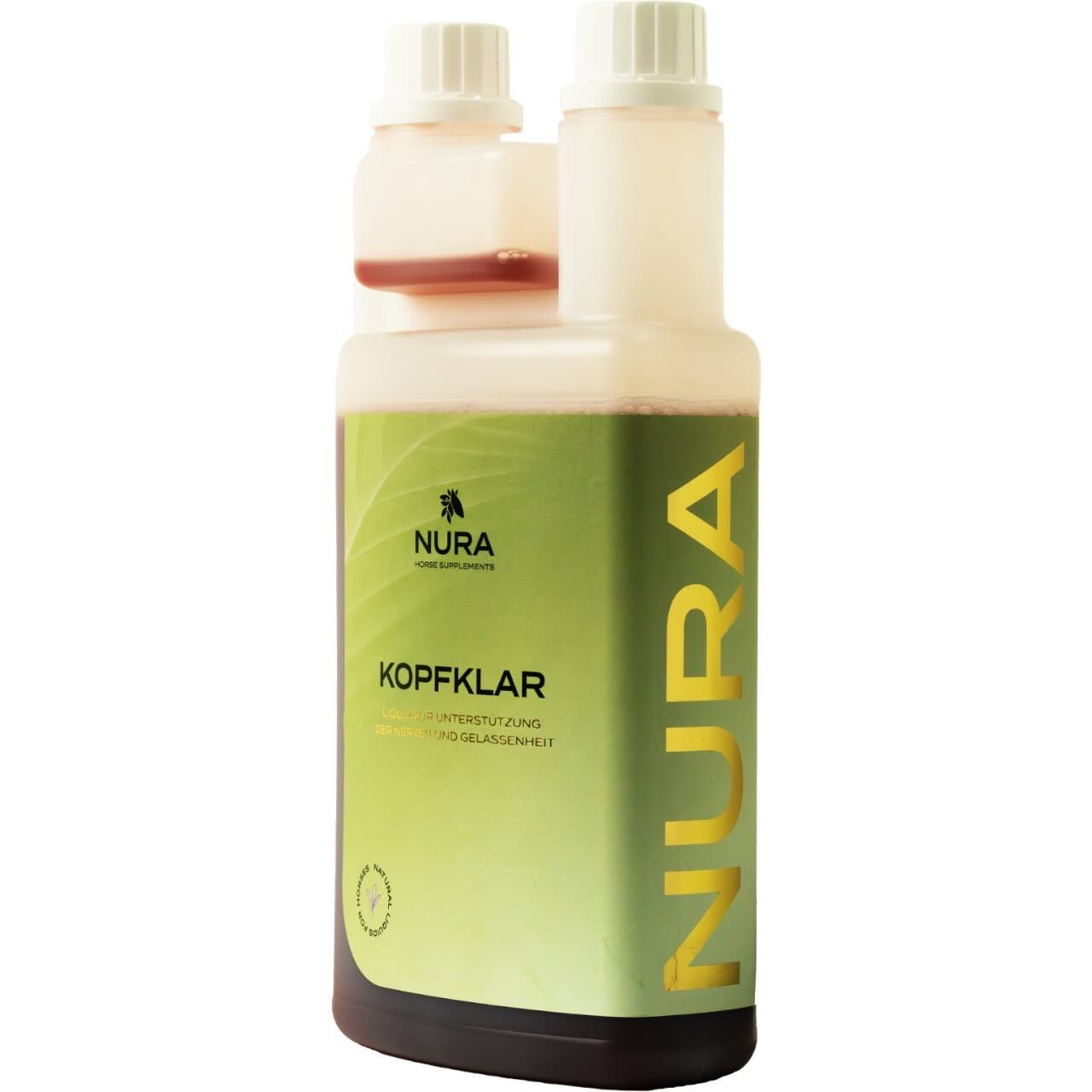 Das NURA HORSE SUPPLEMENTS Nerven Liquid Kopfklar im Doppelpack unterstützt dein Pferd — sichere dir jetzt 10 % Preisvorteil beim Kauf von zwei Flaschen.