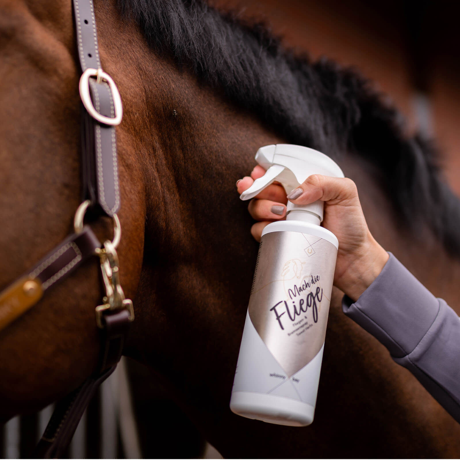 Das Fliegen- & Insektenschutzspray "Mach die Fliege" von whinny x bay lässt dich deinen Stallalltag wieder genießen, indem es dich und dein Pferd vor lästigen Insekten und Fliegen schützt. Egal ob beim Ausritt , Training oder einfach nur bei der täglichen Stallarbeit, "Mach die Fliege" hilft sofort gegen Insekten. Mit dem Sprühkopf lässt sich das Produkt fein und geräuscharm aufsprühen und optimal verteilen.