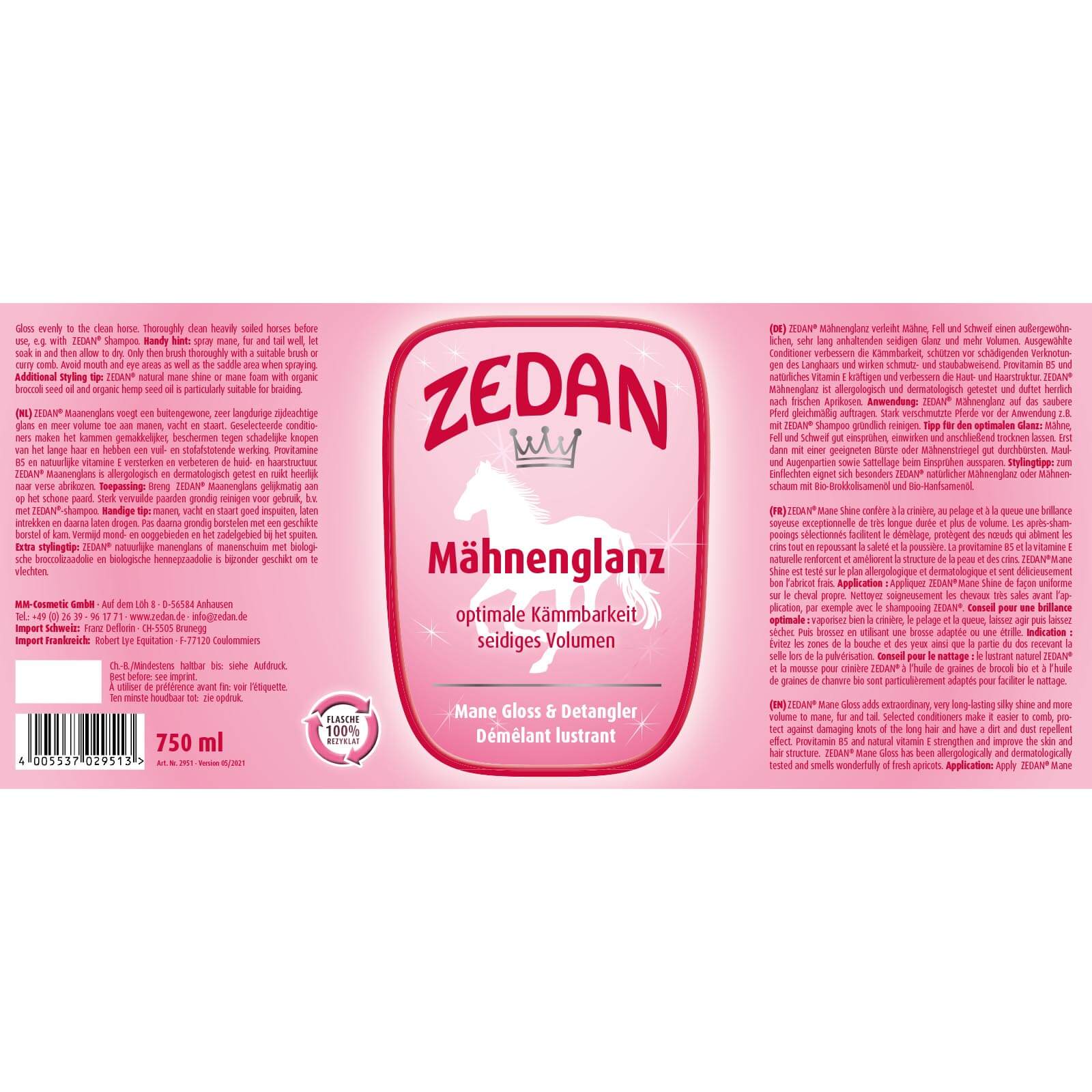 ZEDAN Mähnenglanz ist ein Tierpflegemittel zur äußerlichen Anwendung.