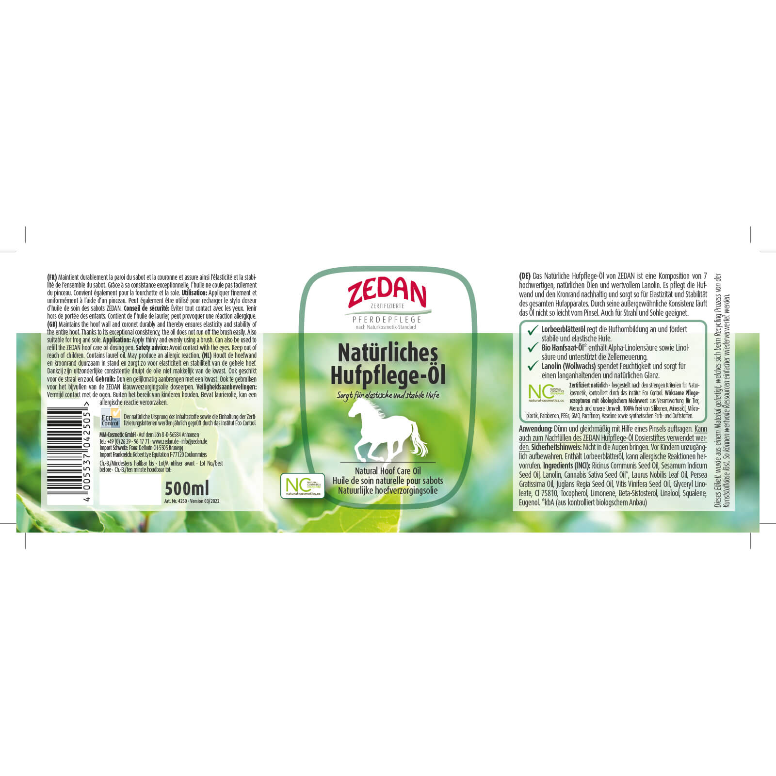 Natürliches Hufpflege-Öl von ZEDAN – Intensive Pflege für die Hufe