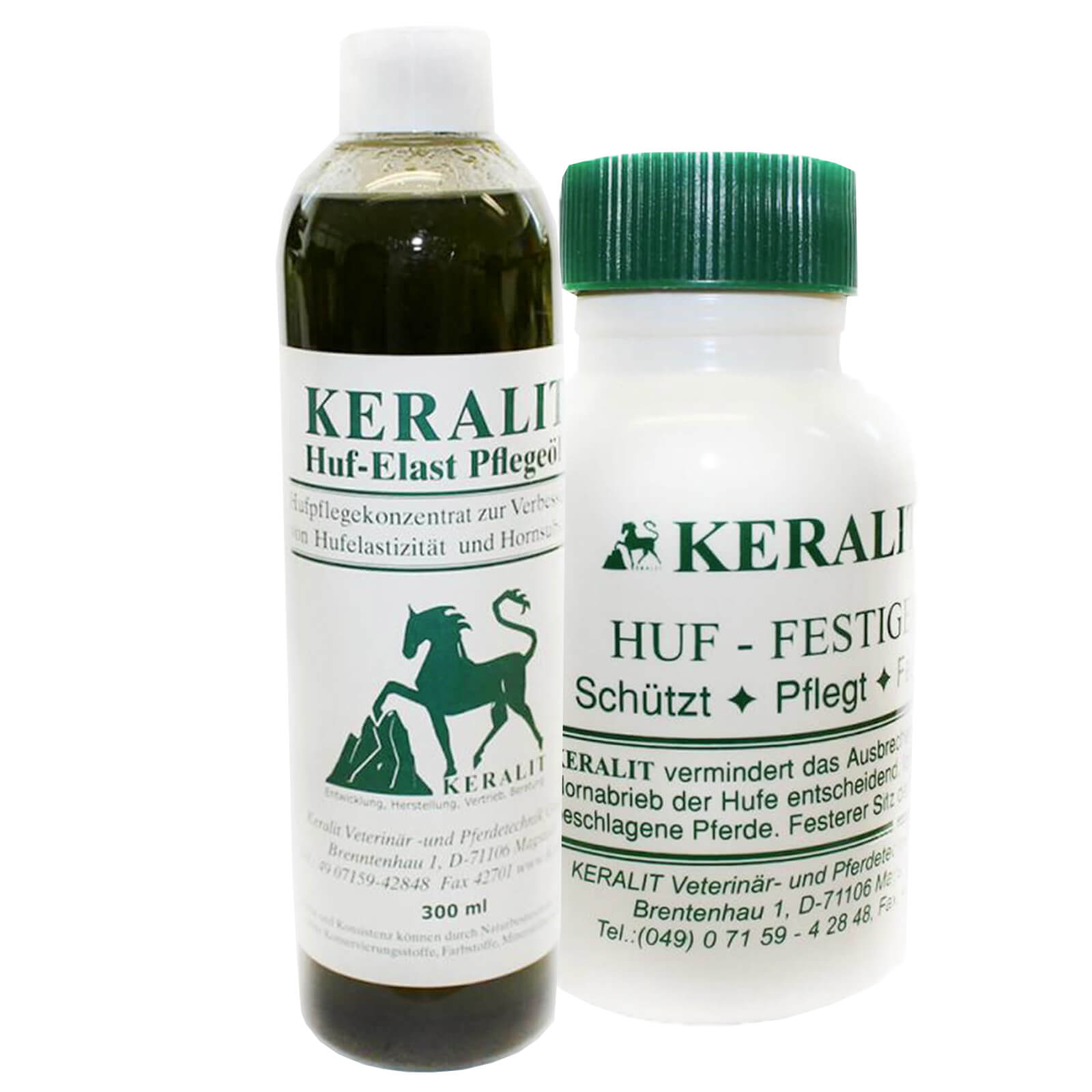 Der Huffestiger von Keralit ist ein Hufpflegeprodukt mit einer besonderen Wirkstoffkombination, das sich vor allem durch die Vorbeugung von Hufschäden bewährt hat. Er beeinträchtigt den Hufmechanismus und den Wasserhaushalt des Hufes nicht und beugt Schäden an den Hufen vor. Der Huffestiger erhöht die Festigkeit und die Abriebbeständigkeit des Hufhorns und festigt die im Hufhorn vorkommenden Proteine.
