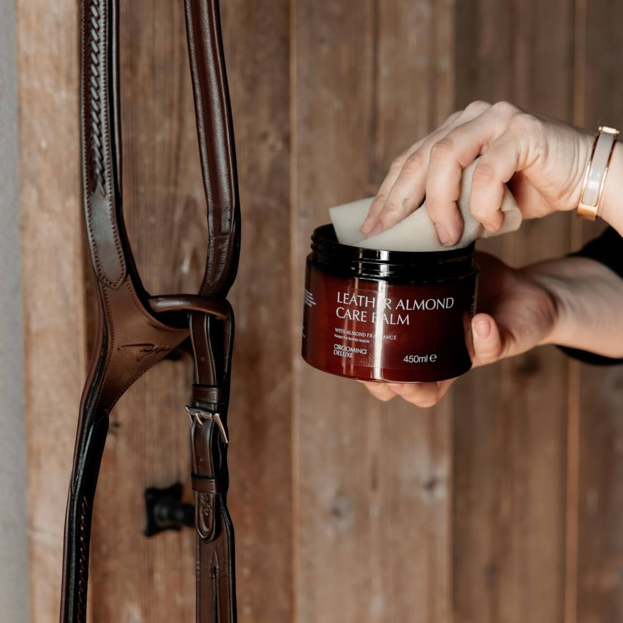 Grooming Deluxe Lederpflegebalsam Mandel Lederpflege bietet eine hochwertige Pflege für dein Leder. Ideal für Sättel und Trensen, überzeugt es durch seine feine Zusammensetzung und einfache Anwendung.