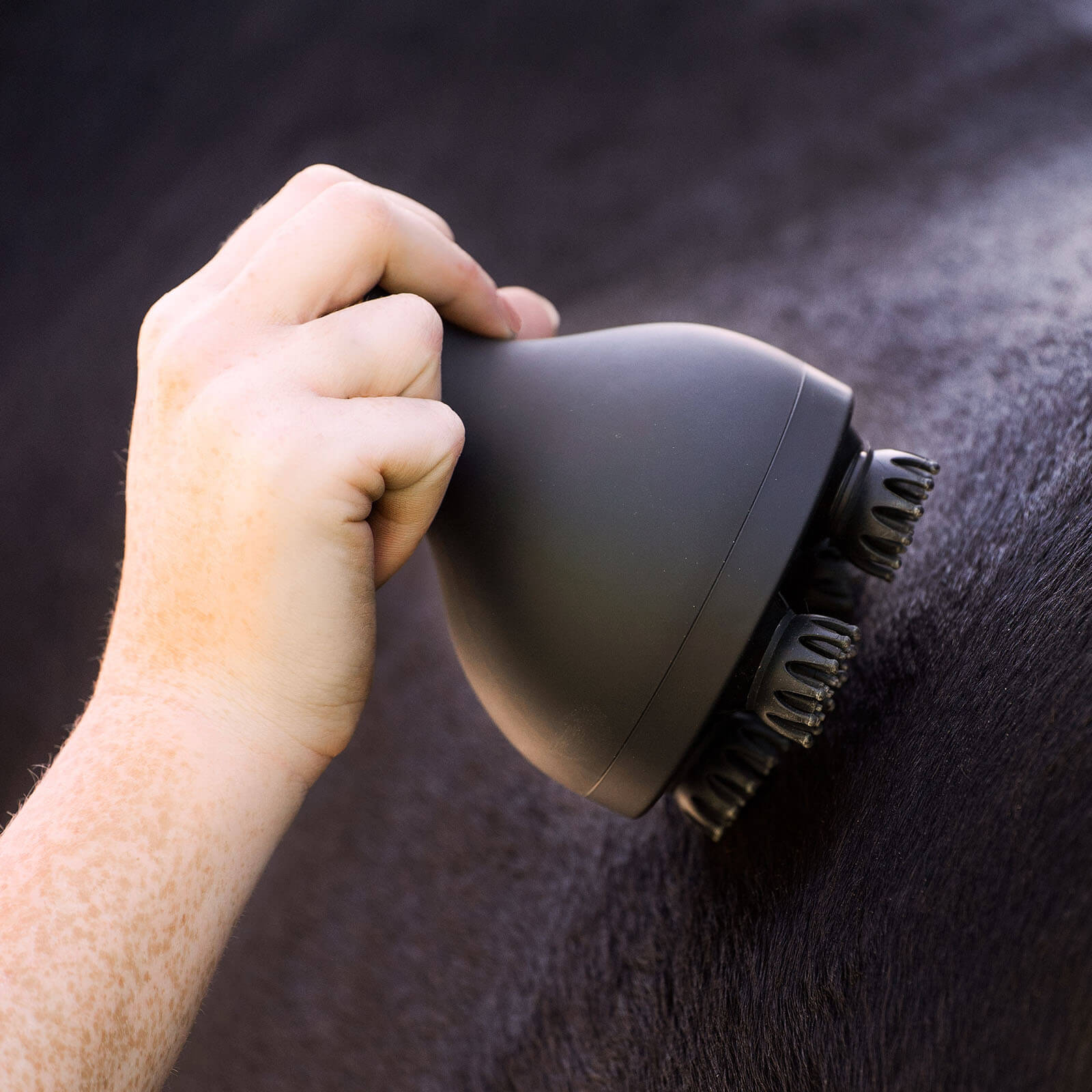 Die Anwendung der IRHVolta Massagebürste ist einfach und effizient. Sie eignet sich hervorragend für die tägliche Pflege deines Pferdes. Die Bürste kann sowohl trocken als auch in Kombination mit Pflegeprodukten verwendet werden und ist ideal für die entspannende Massage während des Groomings.