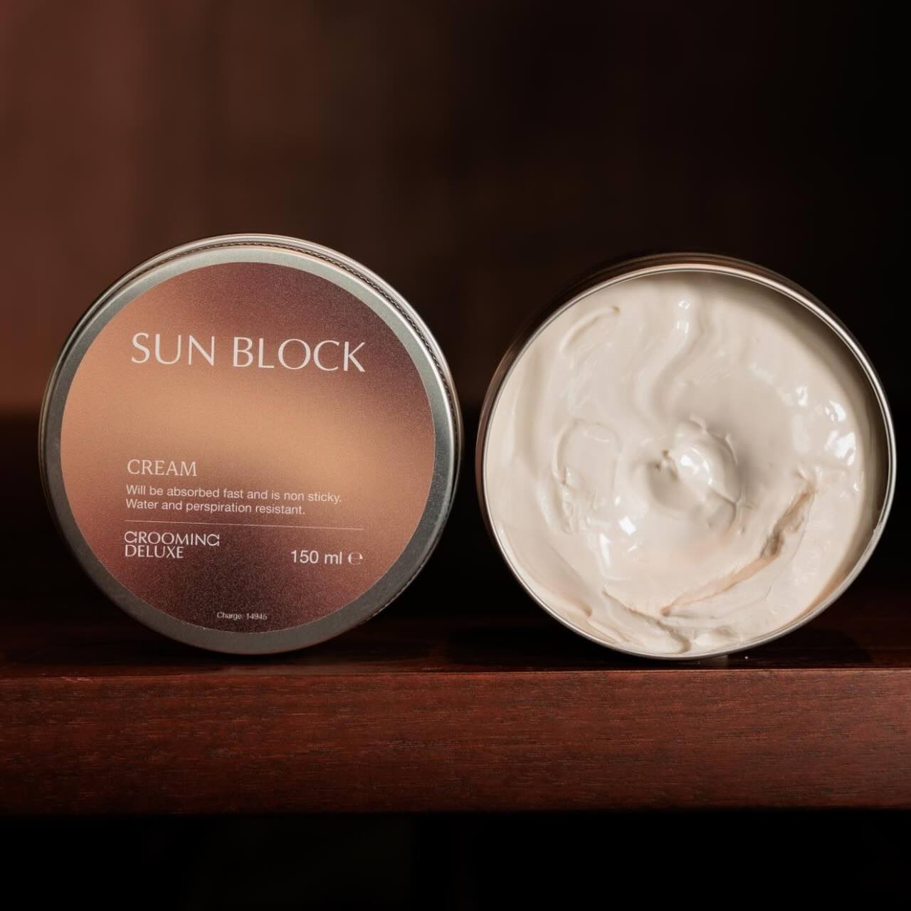 Der Sonnenschutz Sunblock von Grooming Deluxe kommt in einer praktischen 150 g Dose. Die spezielle Formel bietet einen Sonnenschutzfaktor von 30+ und ist ideal für die Anwendung auf empfindlichen Hautstellen wie der Nase oder den Fesselbeugen. Die geschmeidige Textur sorgt dafür, dass das Produkt schnell einzieht, ohne zu kleben.