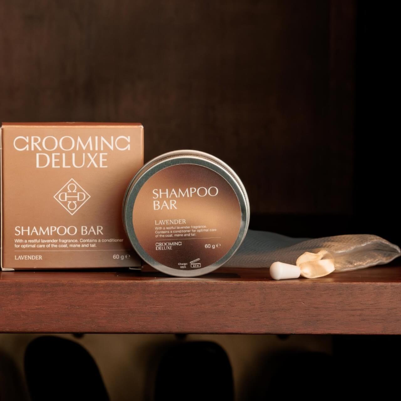 Grooming Deluxe Shampoo Bar Pferdeshampoo bietet eine effektive Reinigung in praktischer Form. Wähle aus Lavendel, Mandel, Propolis oder Aloe Vera. Ideal für die Anwendung nach dem Ausritt oder einfach zwischendurch.Zusammensetzung und Eigenschaften