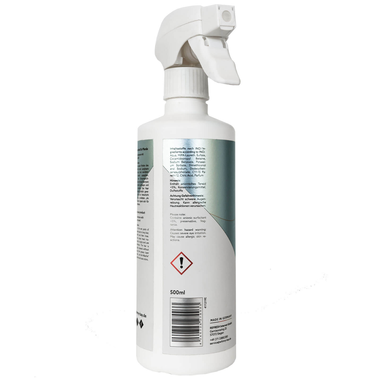 Lagere das Produkt an einem kühlen, trockenen Ort und schütze es vor direkter Sonneneinstrahlung. Die handliche Sprühflasche ist leicht zu bedienen und hält das Shampoo frisch. whinny X bay steht für hohe Qualitätsstandards bei der Herstellung ihrer Pflegeprodukte.