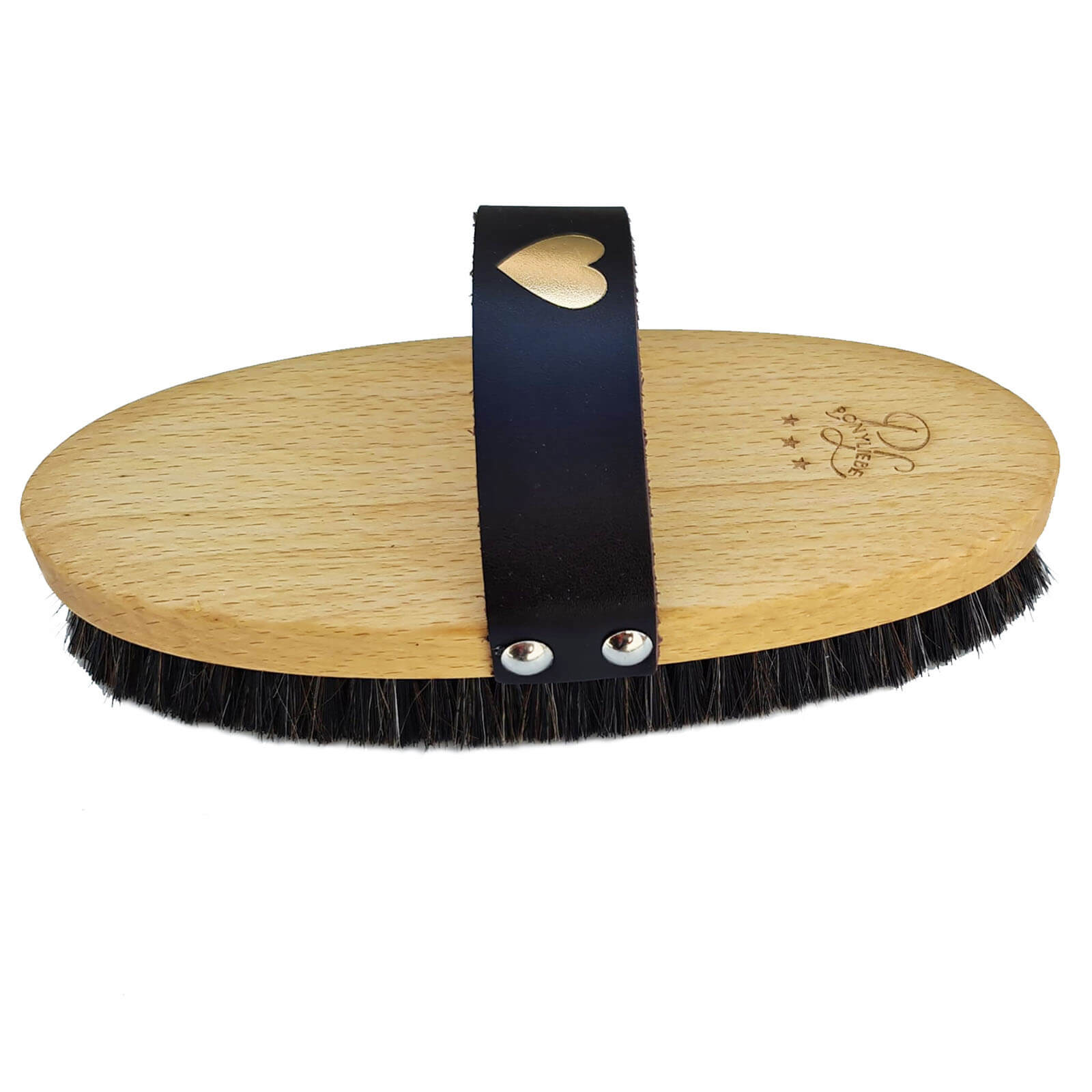 Die Holzkardätsche Heart Holzbürste besticht durch ihren eleganten Bürstenkörper aus FSC® zertifizierter Buche. Die Handschlaufe mit Herz-Prägung unterstreicht das liebevolle Design, das nicht nur optisch überzeugt, sondern auch für einen sicheren Halt sorgt. Die harmonische Farbgebung in Braun und Schwarz/Natur passt perfekt zu jeder Pferdepflegeausrüstung.