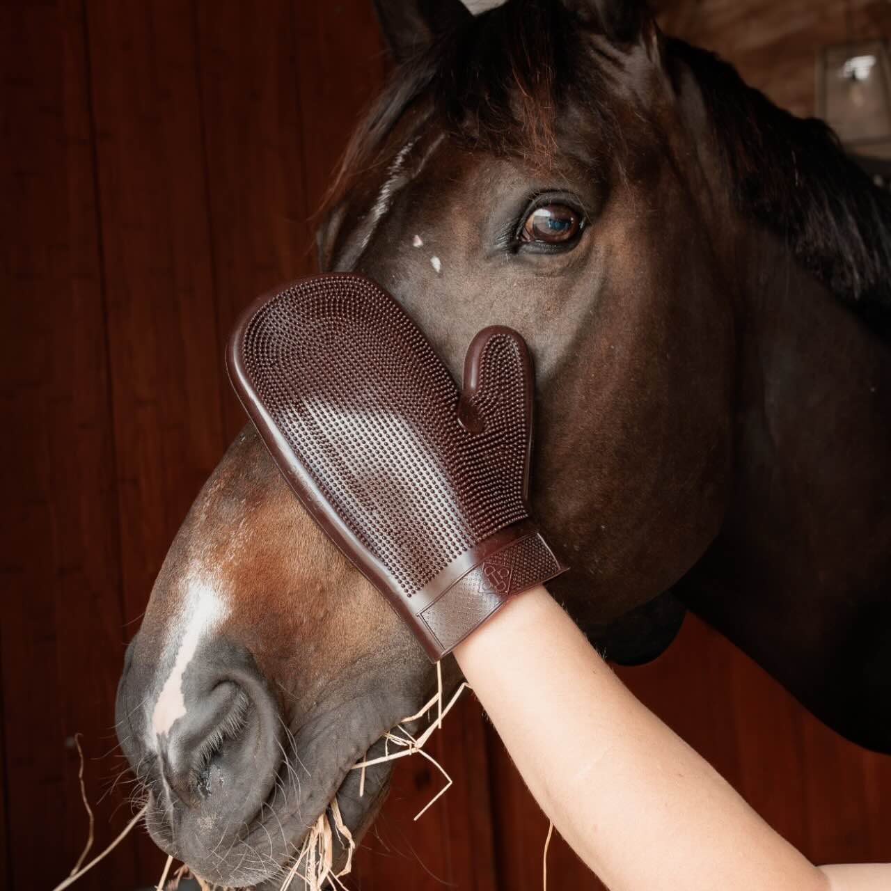 Der Gummi-Putzhandschuh von Grooming Deluxe überzeugt durch seine praktische Anwendungsvielfalt. Mit ihm kannst du lose Haare während des Fellwechsels im Frühjahr und Herbst zuverlässig entfernen. Gleichzeitig eignet er sich perfekt zum Massieren, was die Durchblutung deines Pferdes fördert. Auch beim Einshampoonieren beim Waschen zeigt er seine Stärken. Dank seiner robusten Gummistruktur bleibt er lange formstabil. Gleichzeitig sorgt die Flexibilität des Materials für eine angenehme Nutzung.