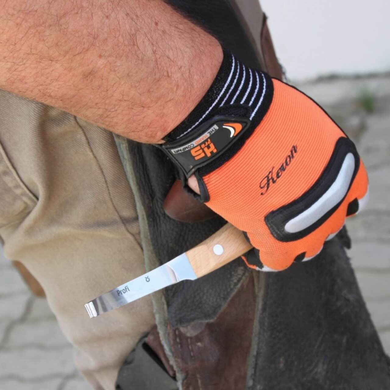 Der ergonomisch geformte Griff aus hochwertigem Edelholz liegt angenehm in der Hand und unterstützt ein ermüdungsfreies Arbeiten, selbst bei längeren Einsätzen. Seine natürliche Haptik bietet dir sicheren Halt und verringert das Risiko von Abrutschen. Gleichzeitig verleiht das Edelholz dem Werkzeug eine edle, professionelle Optik. Das Gewicht ist optimal ausbalanciert und unterstützt die gezielte Führung der Klinge. So wird das Arbeiten effizienter, präziser und sicherer. Ideal für Tierärzte, Schmiede oder engagierte Pferdehalter.