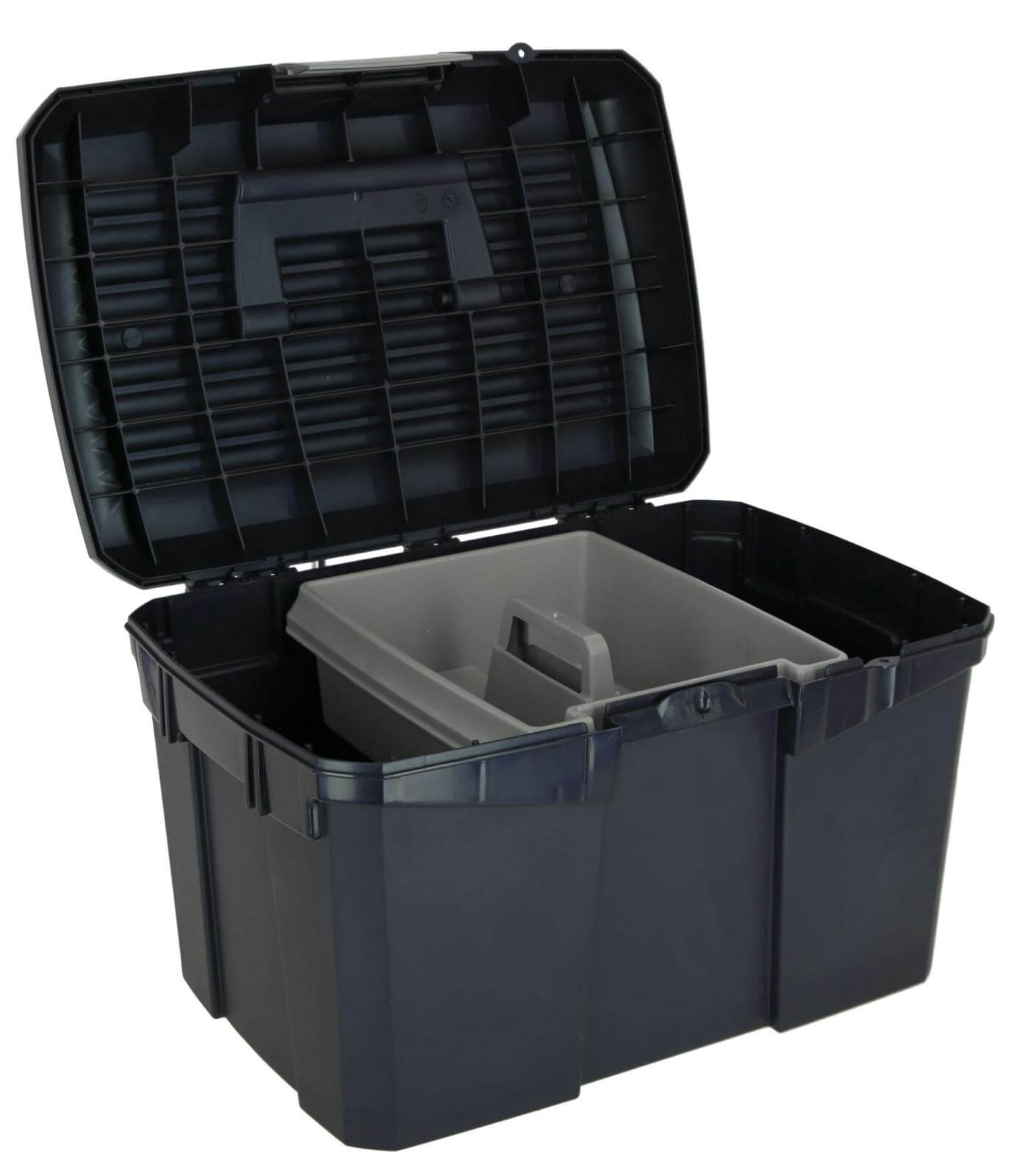 Die Putzbox Siena Putzkiste überzeugt durch ihre elegante Farbkombinationen wie Marine/Hellblau, Grau/Pink, Capriblau und Midnightblue. Diese geschmackvollen Farben passen perfekt in jede Stallumgebung und heben sich dennoch ab. Das Design ist nicht nur ästhetisch ansprechend, sondern auch praktisch: Die verstärkten Ecken und der robuste Deckel bieten einen stabilen Sitz, wenn du die Box als Tritthocker verwenden möchtest.