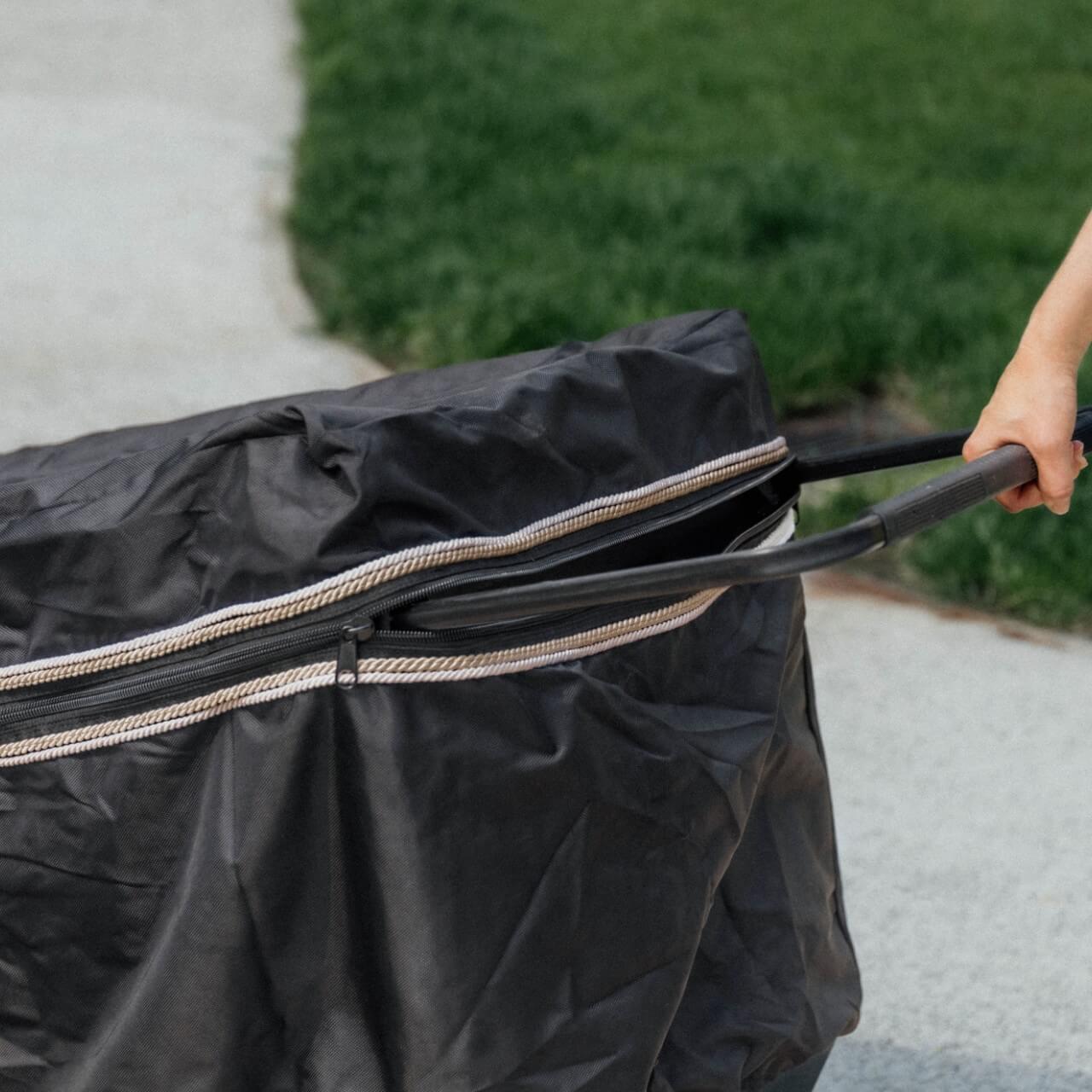 Gefertigt aus leichtem, aber strapazierfähigem 1680D-Außenstoff, bietet dieser Überzug langlebigen Schutz gegen äußere Einflüsse. Die optionale Logo-Bestickung ermöglicht eine individuelle Anpassung, während der rundum verlaufende Reißverschluss maximale Benutzerfreundlichkeit gewährleistet.