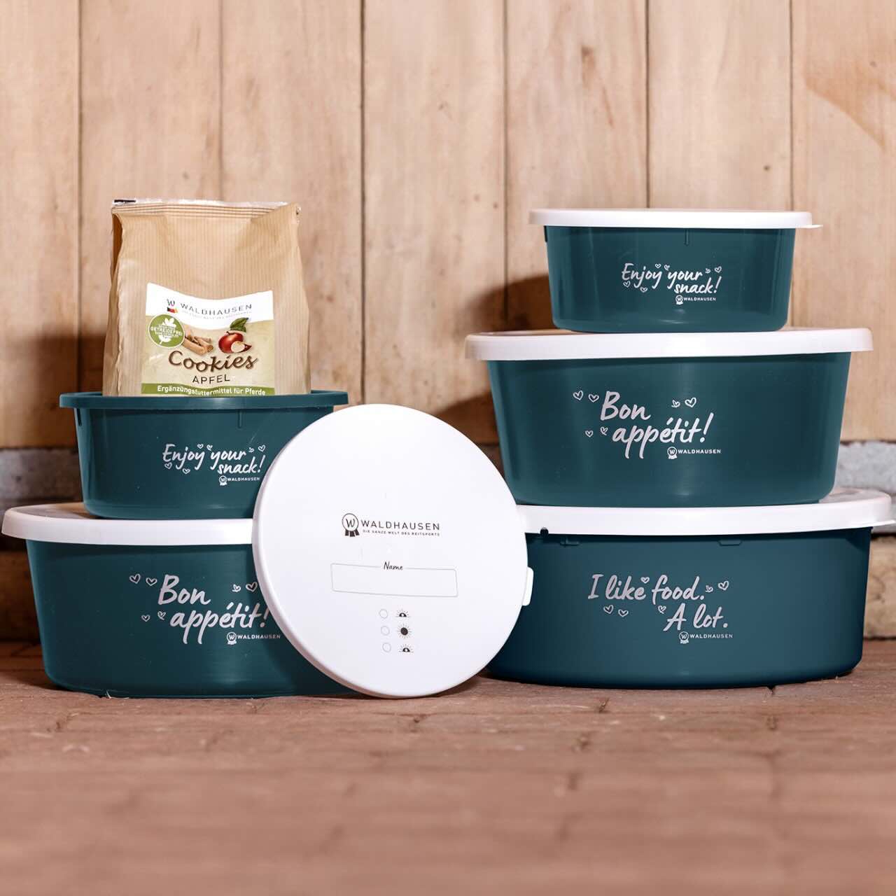 Die Leckerli-Schale mit Deckel Leckerliaufbewahrung ist nicht nur ideal für Pferdeleckerlis, sondern auch vielseitig einsetzbar für andere Futtermittel. Ihre "made in Germany"-Qualität garantiert eine lange Lebensdauer und einfache Pflege. Hol dir jetzt diese praktische Aufbewahrungslösung und genieße die Vorteile einer organisierten und sicheren Futterlagerung.