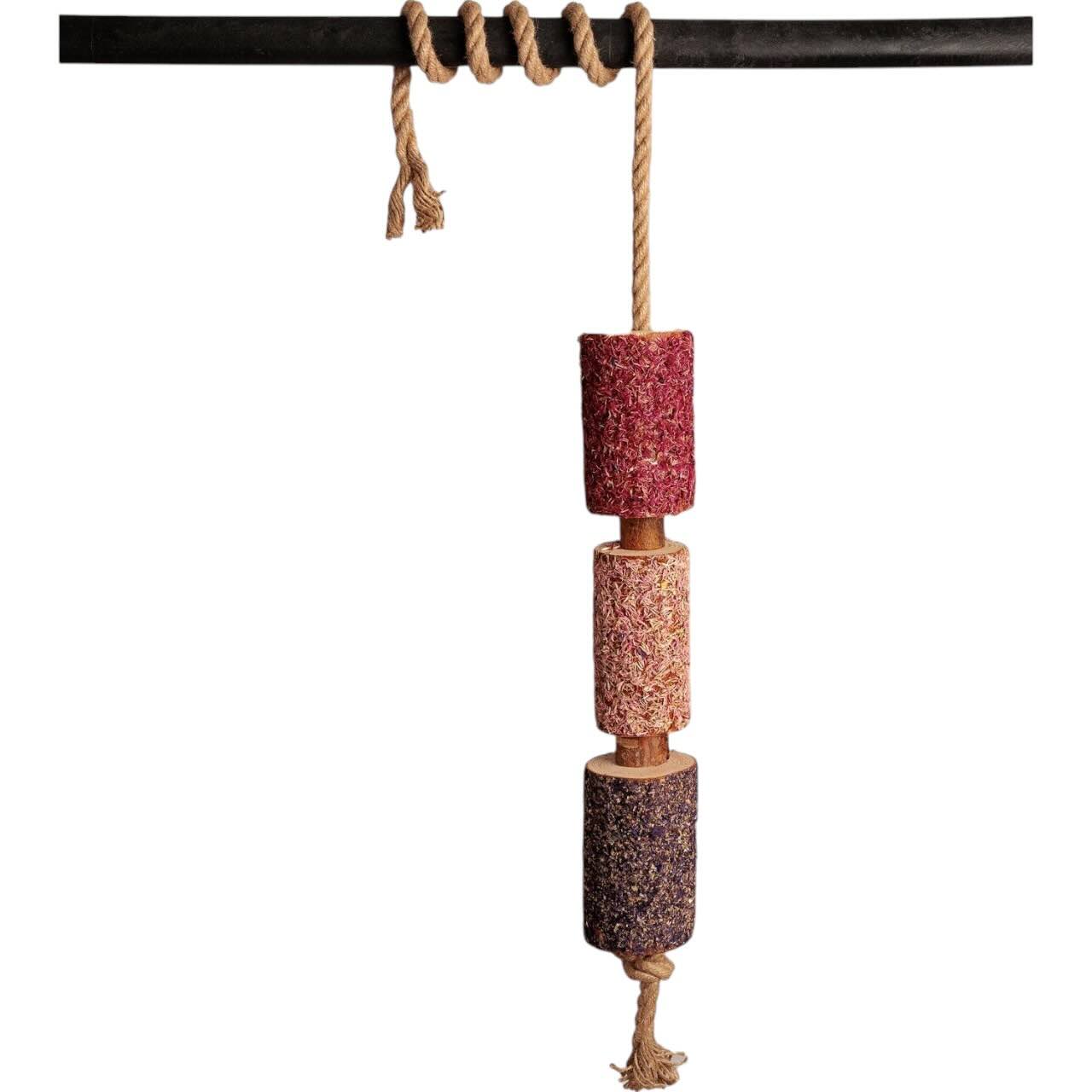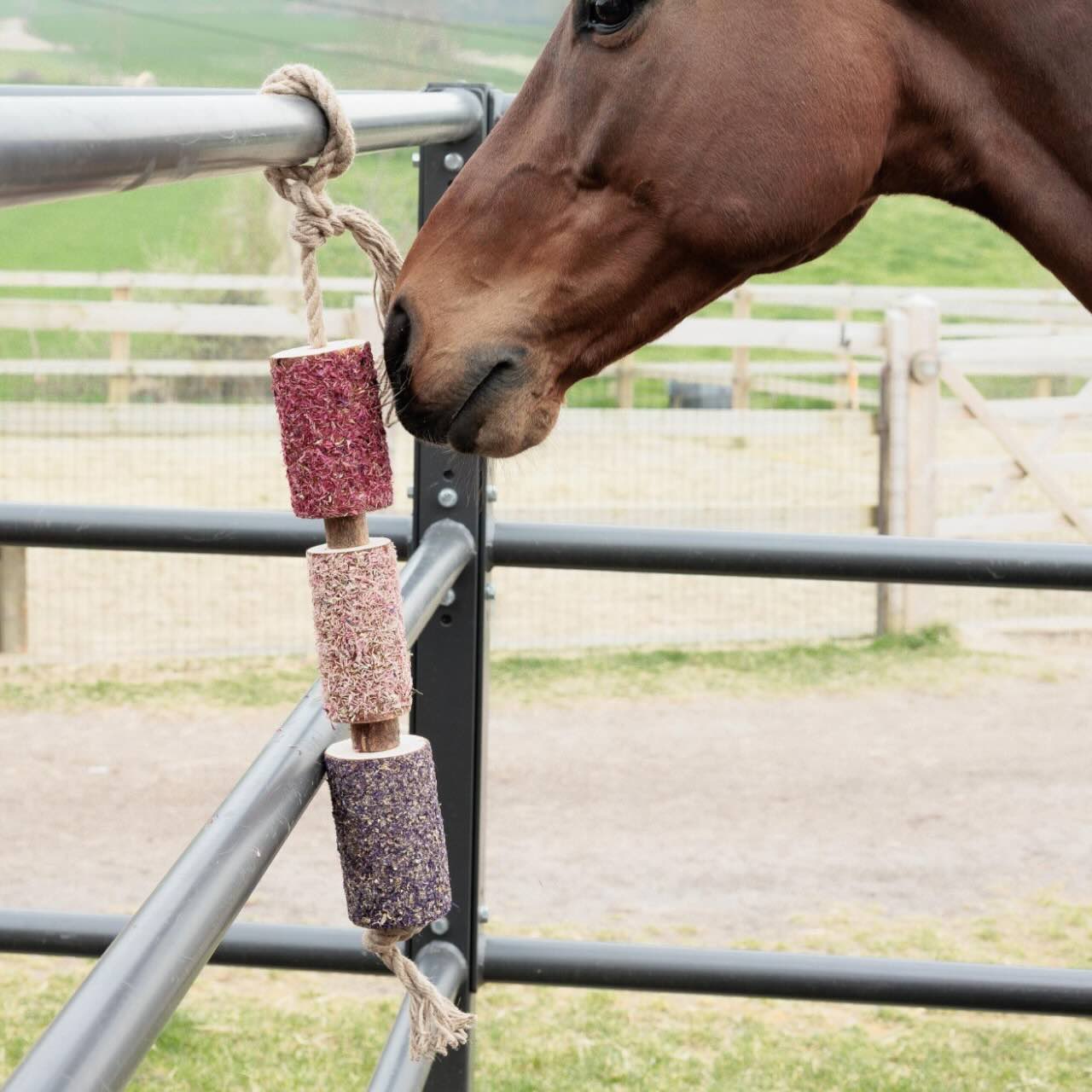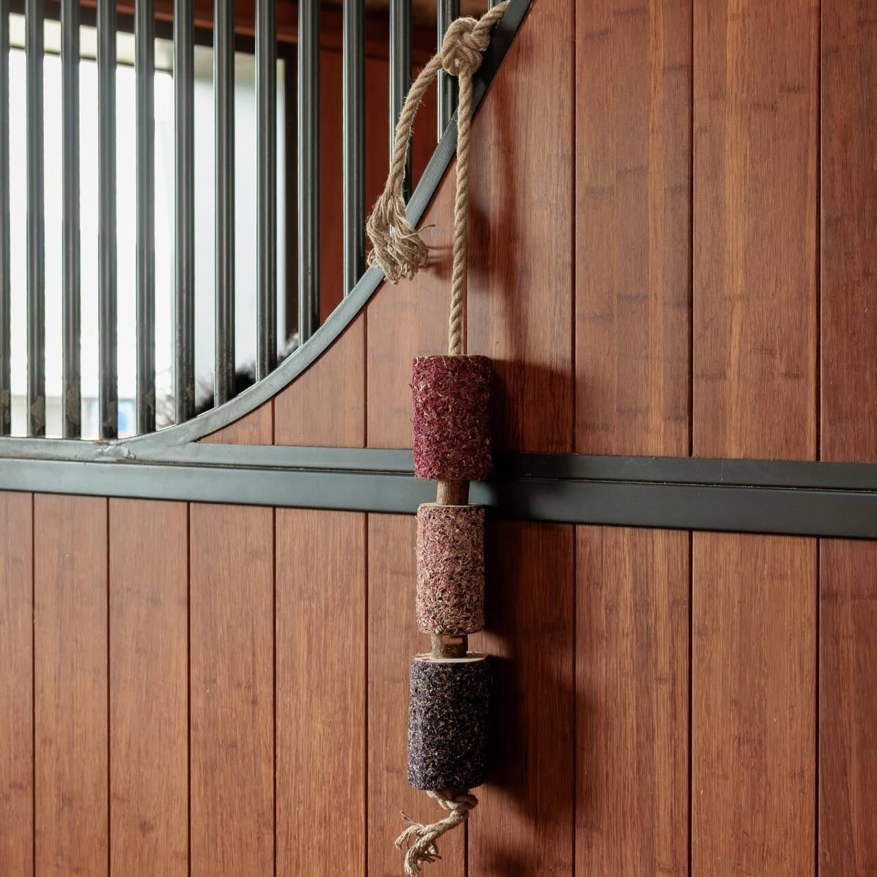 Gefertigt aus handverlesenen Kiefern- und Birkenzweigen bleibt das Holz in seinem ursprünglichen Zustand. Dadurch bleiben die natürlichen Aromen und ätherischen Öle vollständig erhalten. Der Duft nach Wald – kombiniert mit Petersilie und Ölen wie Pfefferminze und Dill – kann wie Aromatherapie auf dein Pferd wirken. Ohne Zucker oder künstliche Aromastoffe ist dieses Spielzeug ein rundum nachhaltiger Beschäftigungsartikel. Besonders für sensible oder stallgehaltene Pferde kann es eine wohltuende Ergänzung im Alltag sein.