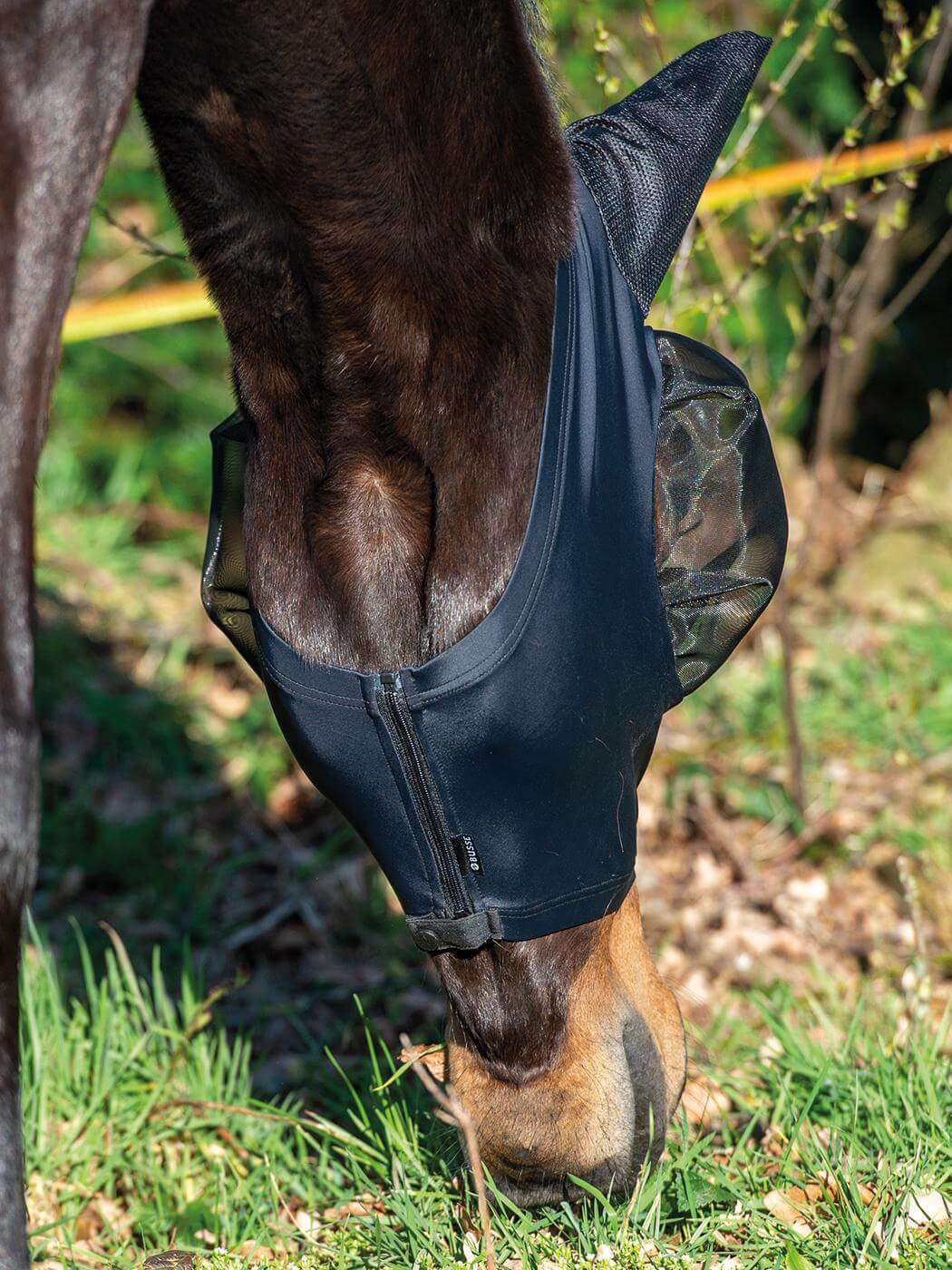 Ausgestattet mit einem YKK®-Reißverschluss, lässt sich die Fliegenmaske Twin Fit mühelos anlegen. Das engmaschige Netzmaterial bietet nicht nur umfassenden Schutz, sondern ist auch formstabil und atmungsaktiv. Die gut belüfteten Ohren aus weichem Netzmaterial gewährleisten, dass dein Pferd jederzeit komfortabel bleibt.