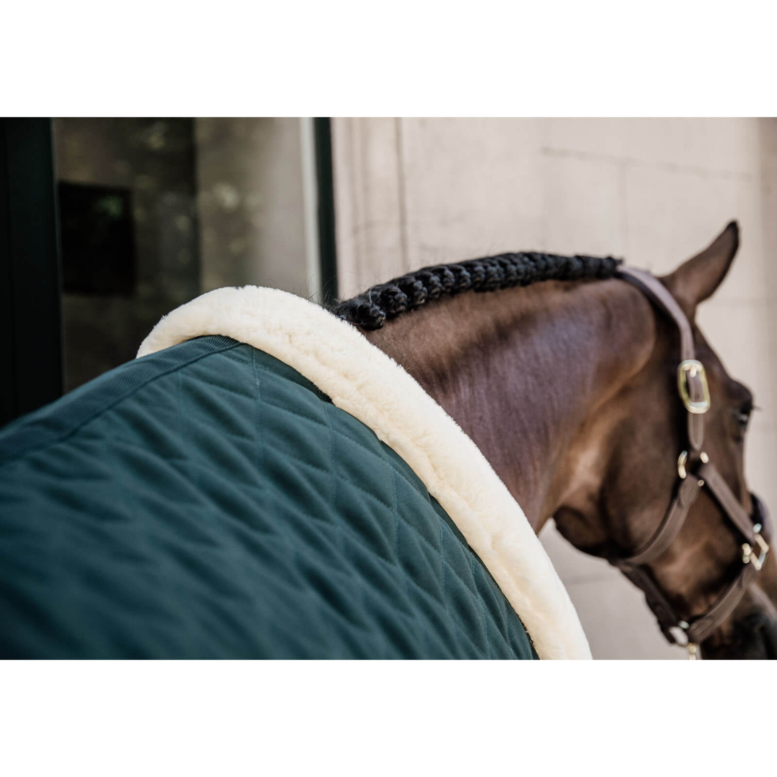 - Künstliches Schaffell an Hals, Widerrist und Brust