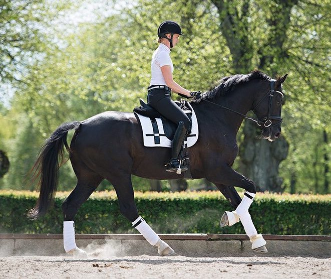 Ausgestattet mit einem "super schnell trocknenden" Innenmaterial garantiert die Schabracke eine hervorragende Feuchtigkeitsregulierung. Das glänzende, schmutzabweisende Außenmaterial sorgt für eine langanhaltende Frische und einfache Pflege. Diese technischen Eigenschaften machen die Schabracke zur optimalen Wahl für ambitionierte Dressurreiter.